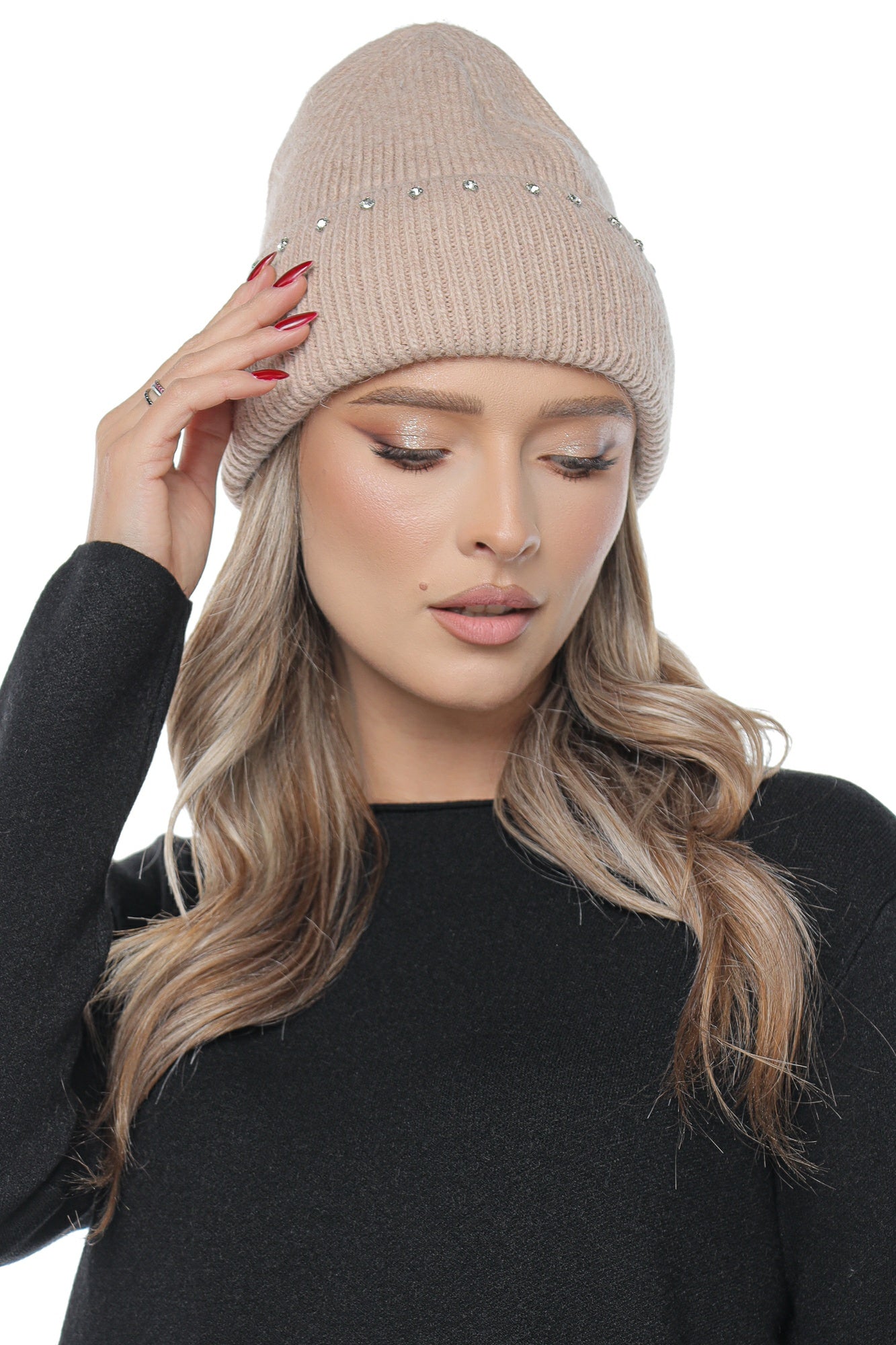 Descriere: Caciula dama cu banta intoarsa accesorizata cu strasuri.