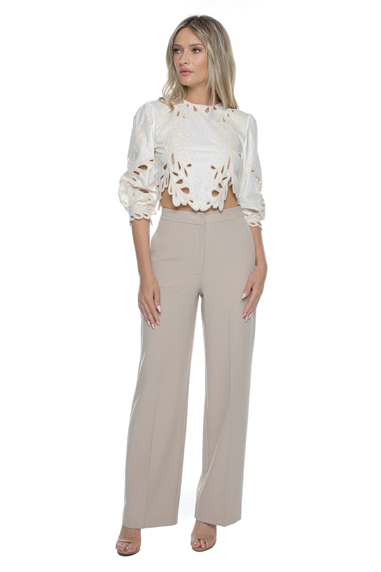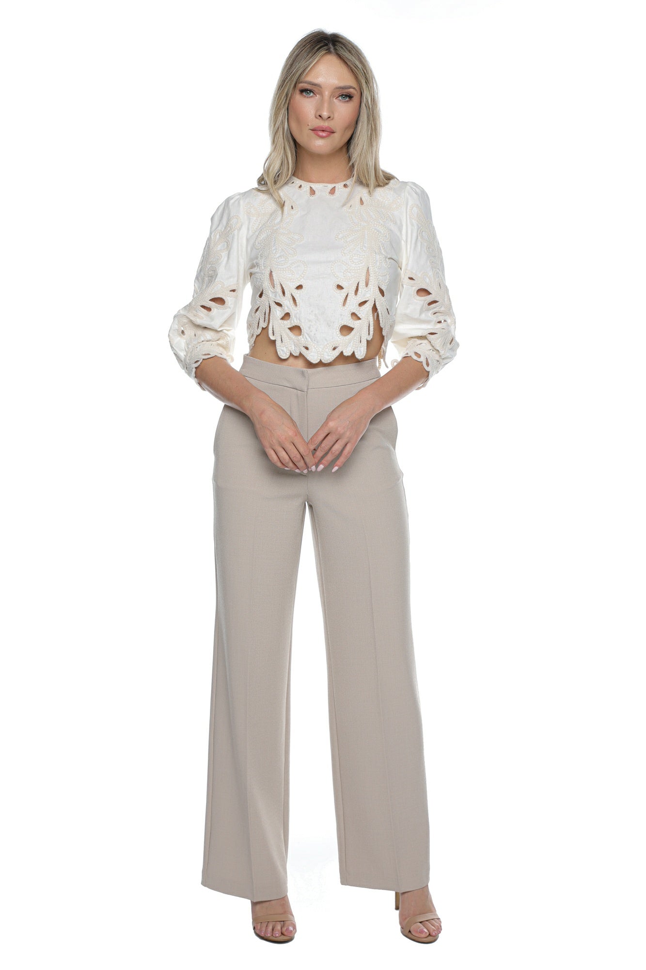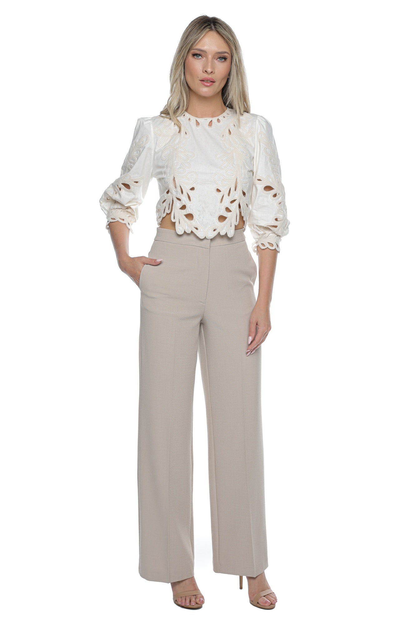 Descriere: Pantaloni bej eleganți cu croială dreaptă, talie înaltă și design office sunt o piesă versatilă, perfectă pentru birou, întâlniri de afaceri sau ocazii unde eleganța discretă este cheia. Realizați dintr-un material cu ținută, aceștia oferă confort și stil într-un design rafinat.