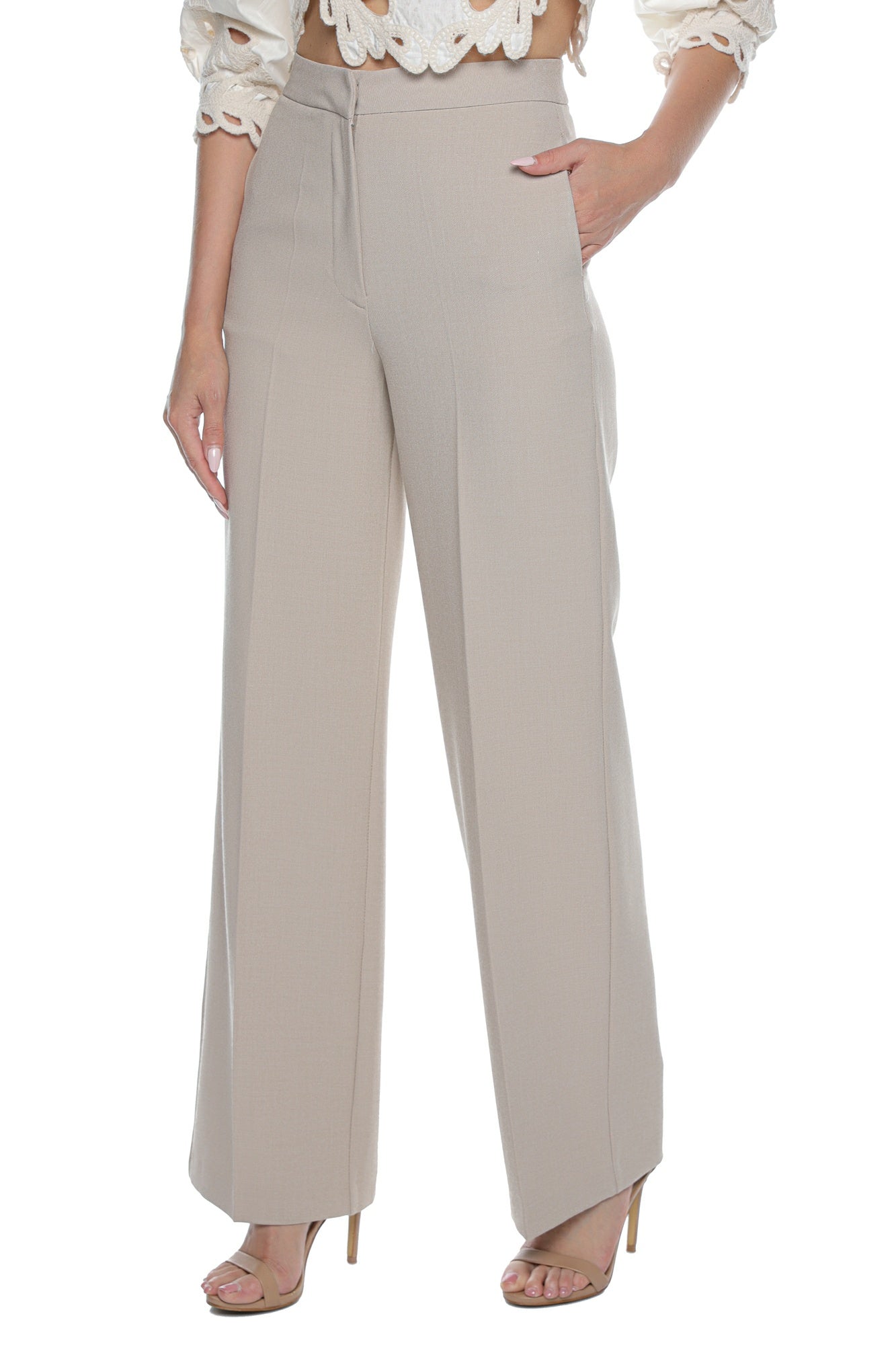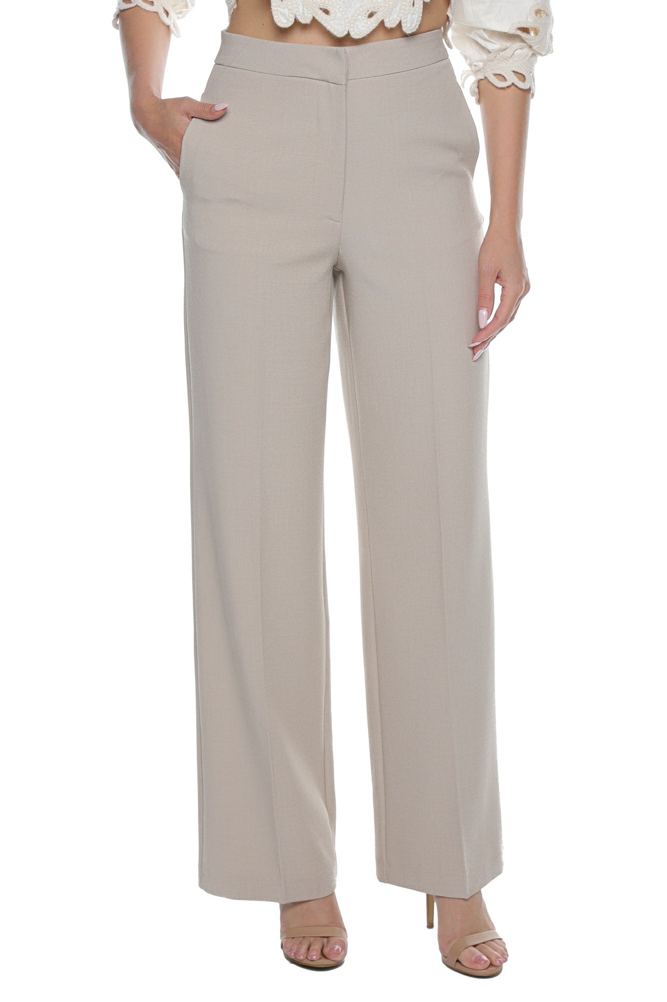 Pantaloni bej eleganți cu croială dreaptă design office chic