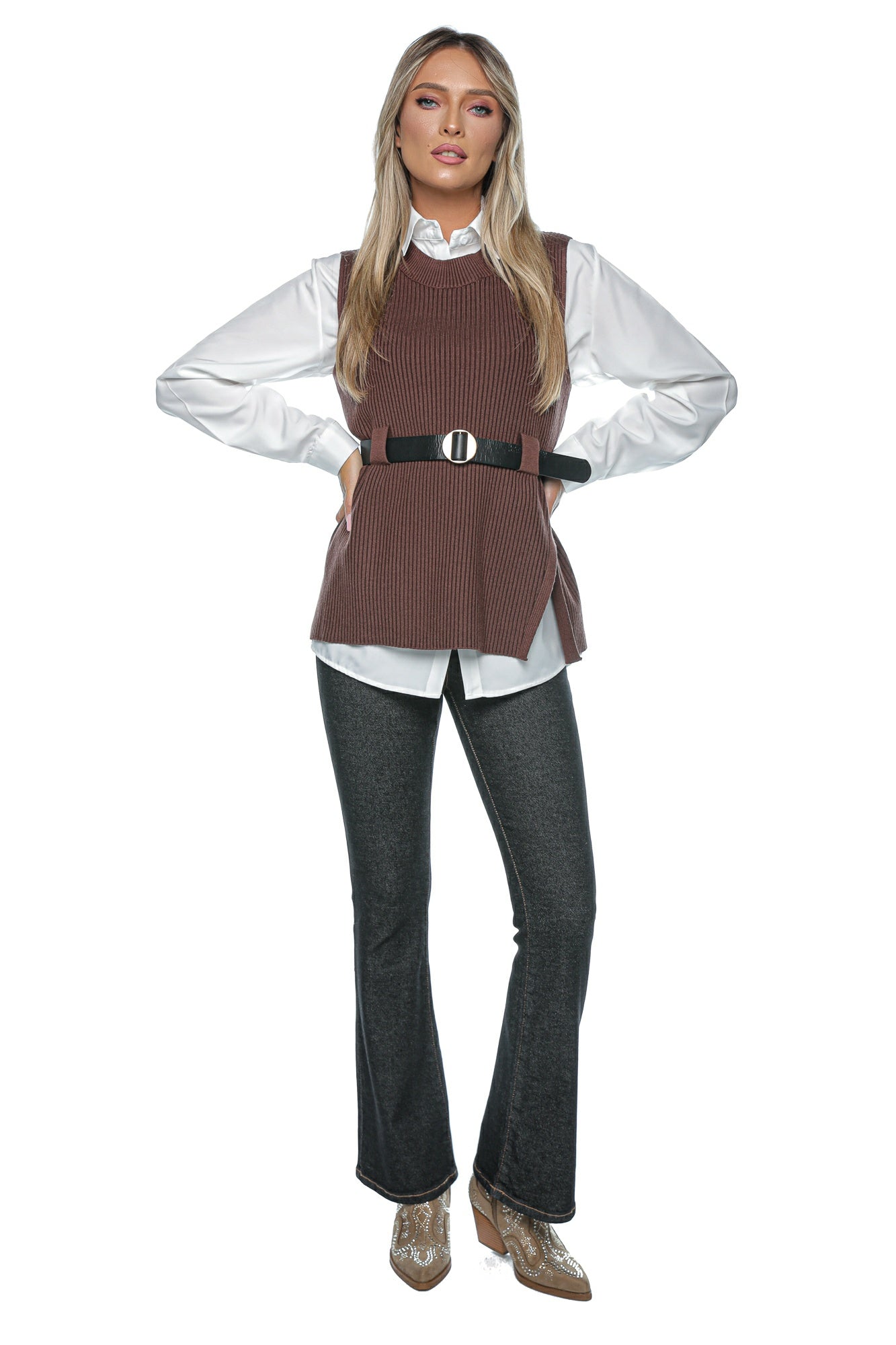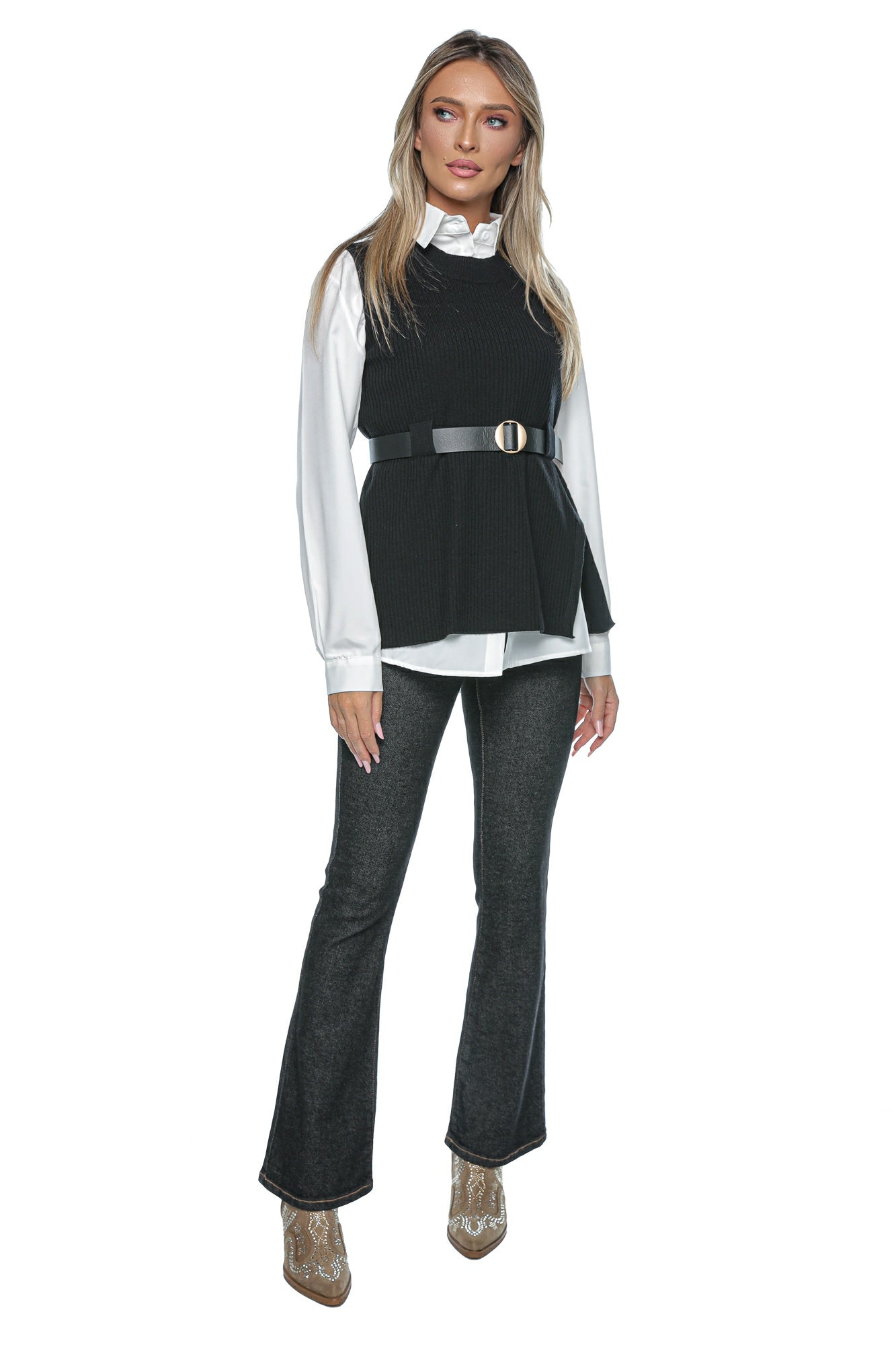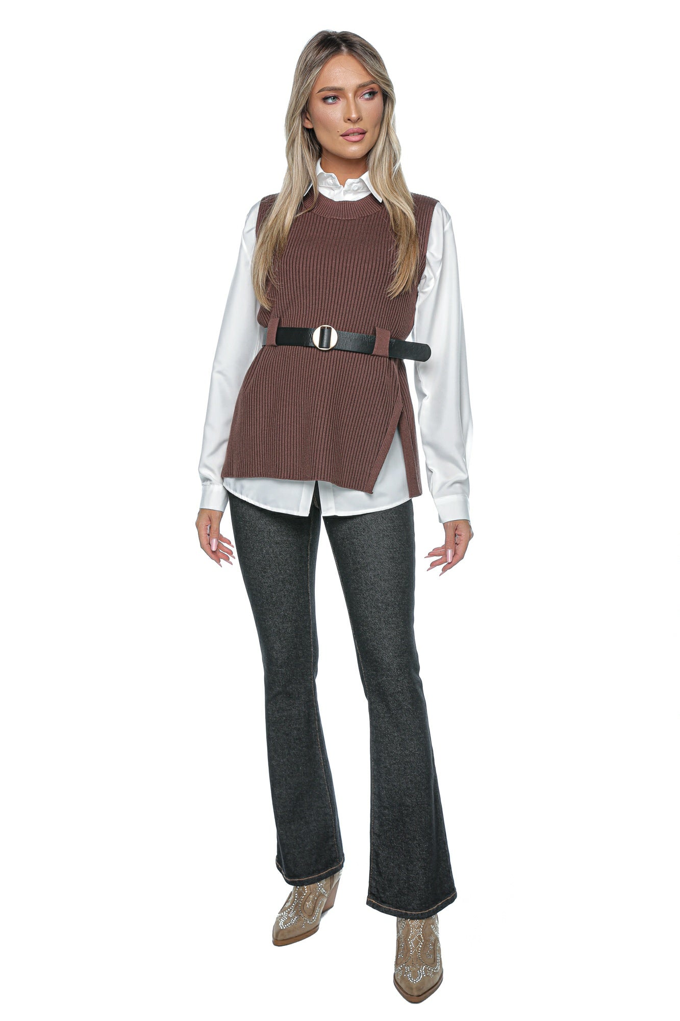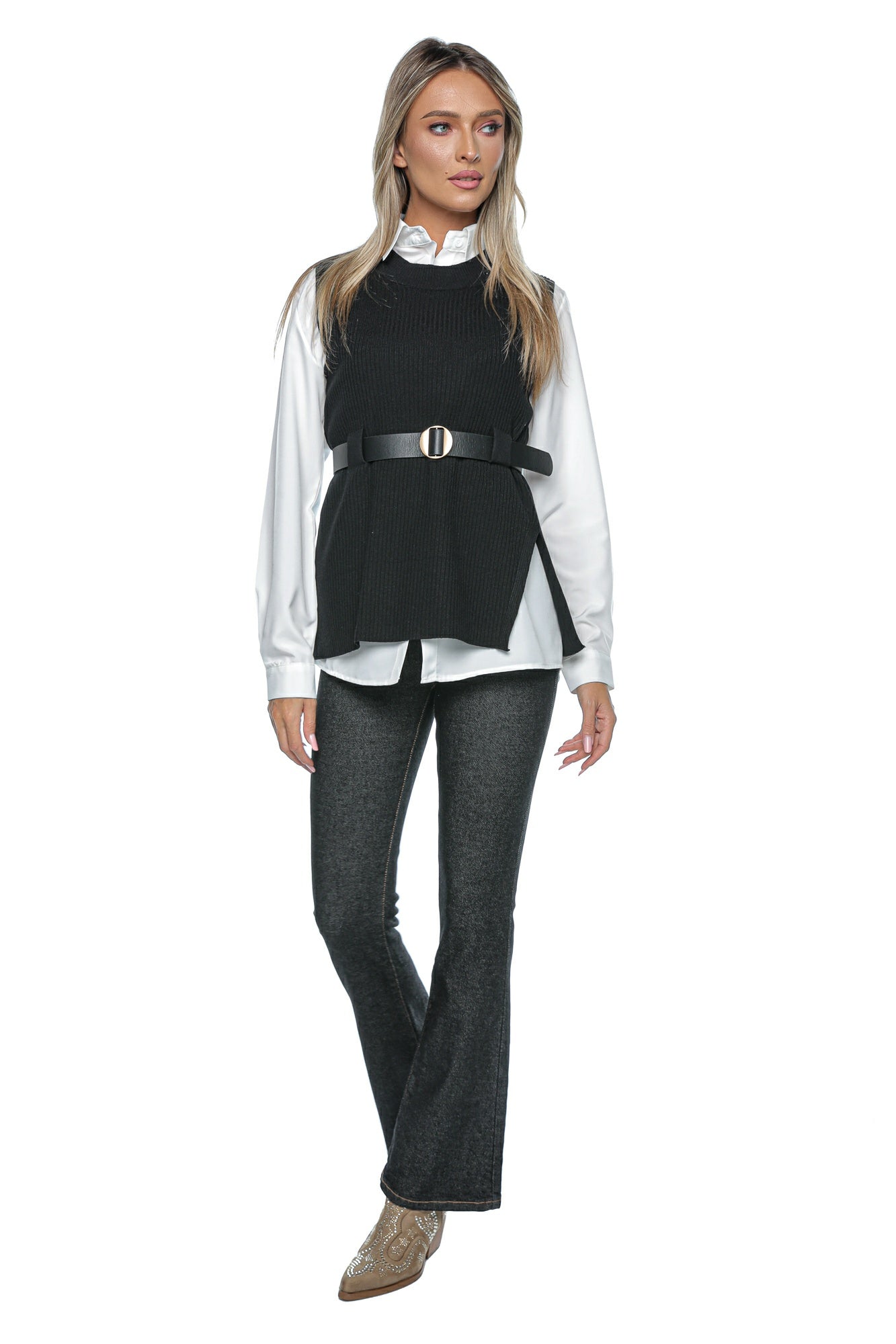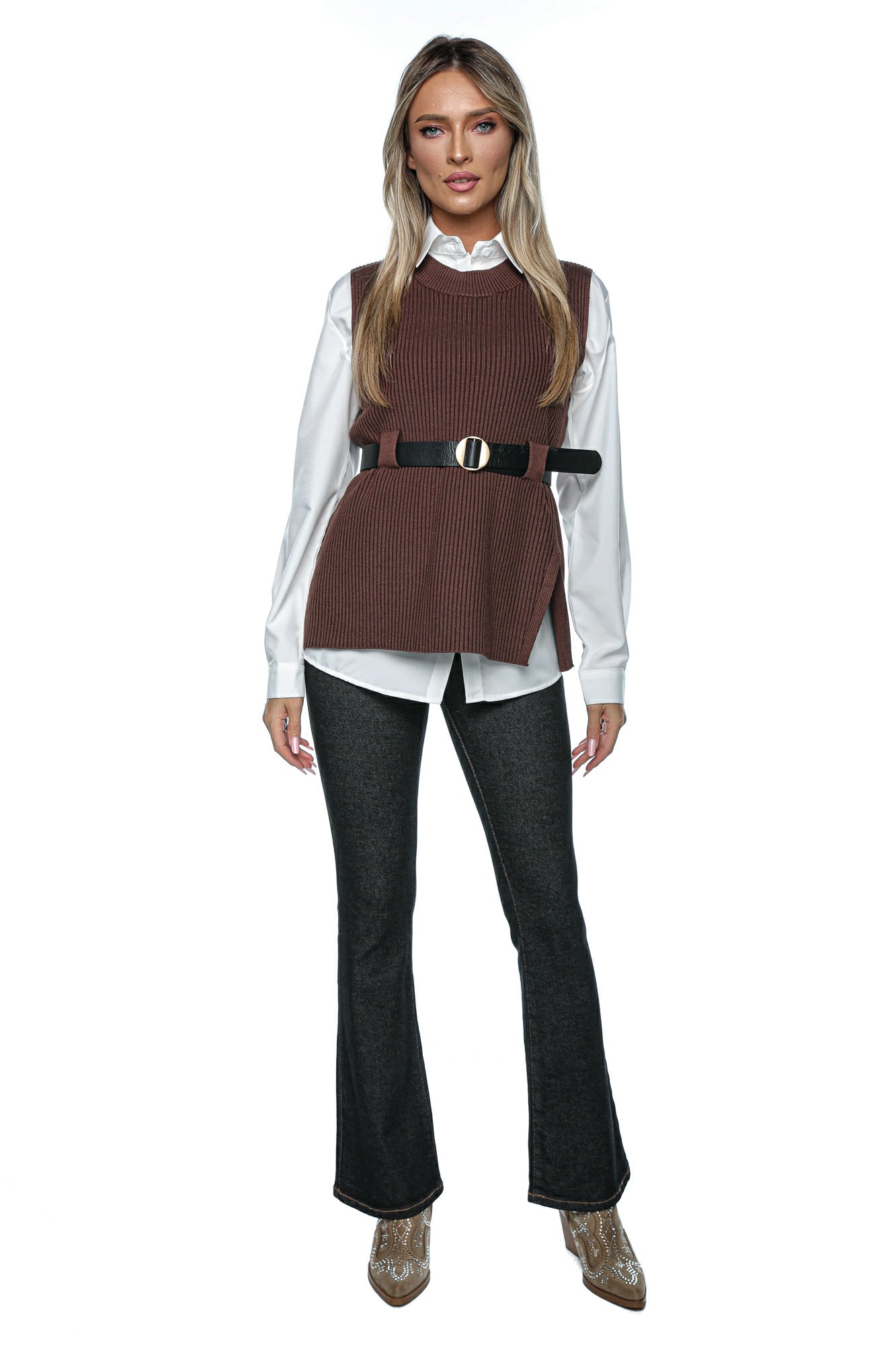 Descriere: Set dama camasa si vesta tricotata este alegerea ideala pentru un look modern, elegant si confortabil. Camasa clasica, cu maneci lungi si croi lejer, se imbina perfect cu vesta tricotata cu textura in relief. Cureaua inclusa in talie accentueaza silueta si adauga un detaliu chic, transformand tinuta intr-una completa si rafinata.