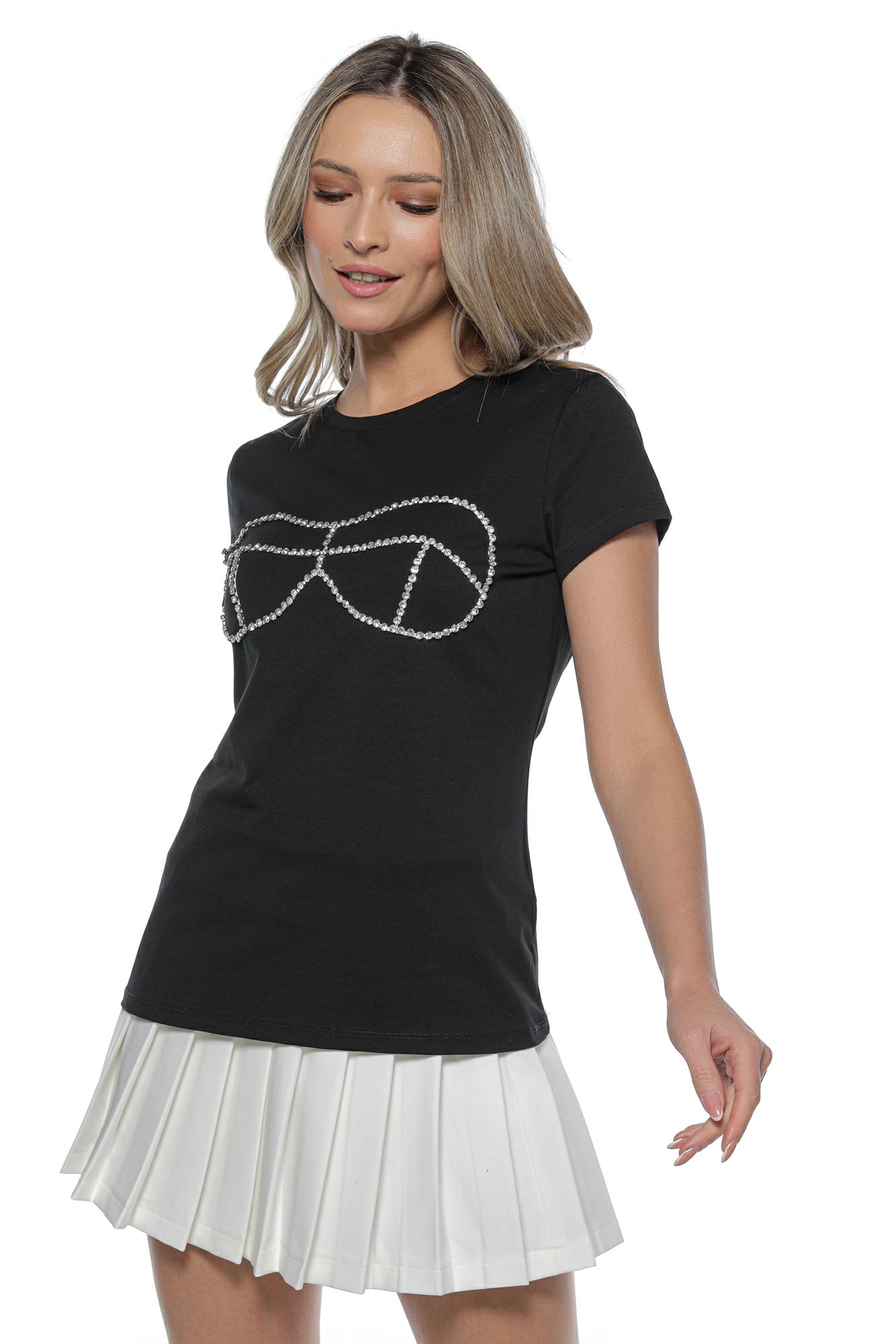 Descriere: Tricou dama din bumbac cu aplicatie contur sutien stras.